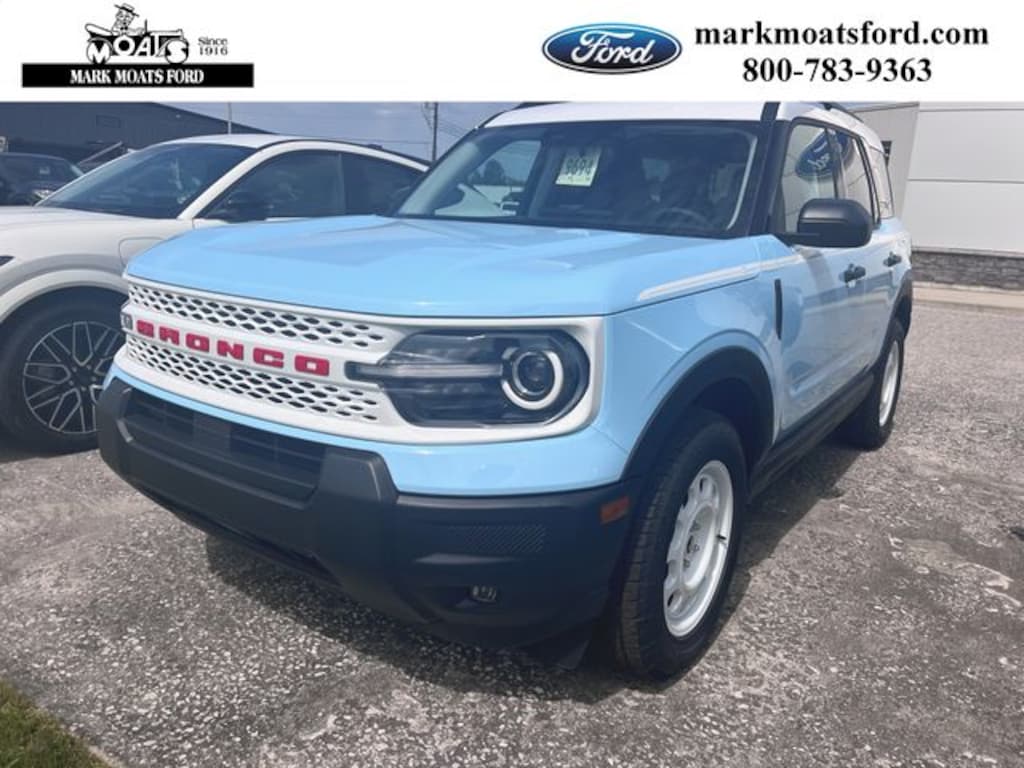 Robins Egg Blue 2025 Ford Bronco Sport Heritage 4WD 8-Speed Automatic 1.5L EcoBoost AM/FM radio: SiriusXM, Automatic temperature control, Remote keyless entry, Speed control, SYNC 4 w/Enhanced Voice Recognition.