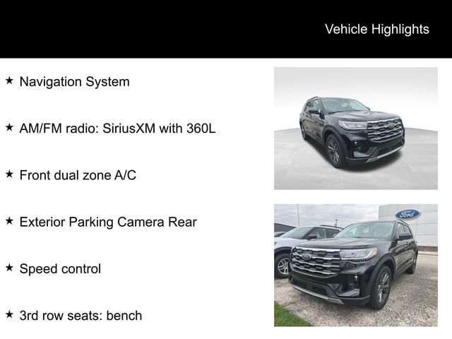 Agate Black Metallic 2026 Ford Explorer Active 4WD 10-Speed Automatic 2.3L EcoBoost I-4 3rd row seats: bench, AM/FM radio: SiriusXM with 360L, Exterior Parking Camera Rear, Front dual zone A/C, Navigation System, Speed control.