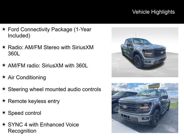 Carbonized Gray Metallic 2026 Ford F-150 XLT 4WD 10-Speed Automatic 2.7L V6 EcoBoost Air Conditioning, AM/FM radio: SiriusXM with 360L, Ford Connectivity Package (1-Year Included), Radio: AM/FM Stereo with SiriusXM 360L, Remote keyless entry, Speed control, Steering wheel mounted audio controls, SYNC 4 with Enhanced Voice Recognition.
