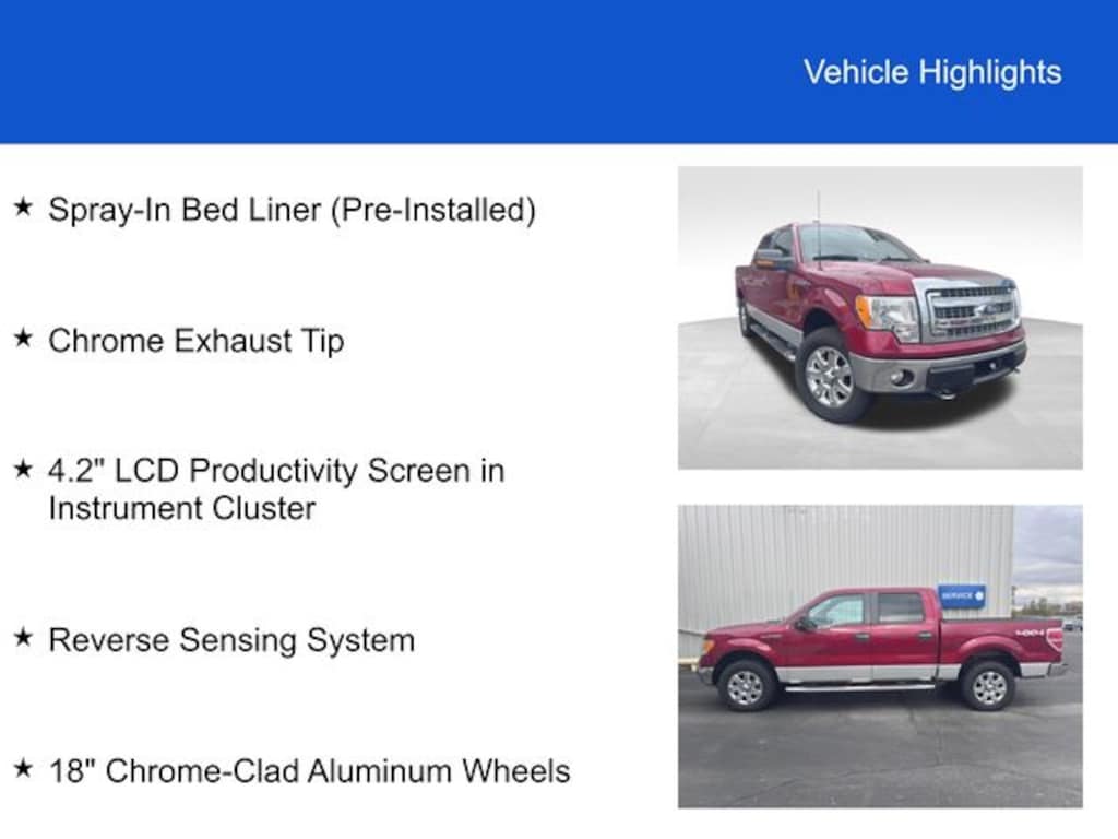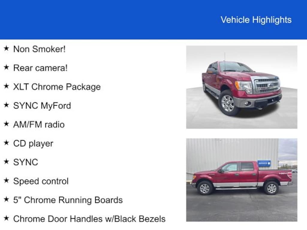 Red 2013 Ford F-150 XLT 4WD 6-Speed Automatic Electronic 5.0L V8 FFV Non Smoker! Rear camera! 18" Chrome-Clad Aluminum Wheels, 4.2" LCD Productivity Screen in Instrument Cluster, 5" Chrome Running Boards, AM/FM radio, CD player, Chrome Door Handles w/Black Bezels, Chrome Exhaust Tip, Reverse Sensing System, Speed control, Spray-In Bed Liner (Pre-Installed), SYNC, SYNC MyFord, XLT Chrome Package.